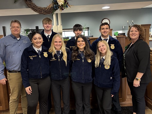 In order from left to right: Luke Larson - VP Ag and Commercial Lending, Sam Perschnick FFA Advisor, Colten Harms, Jacob Morgan, Maddi Porter, Taylor Richmond, Carson Meier, Jace Howard. Garett O. Plumley - President and CEO. Prophetstown/Lyndon/Tampico High School FFA members visited Farmers National ...