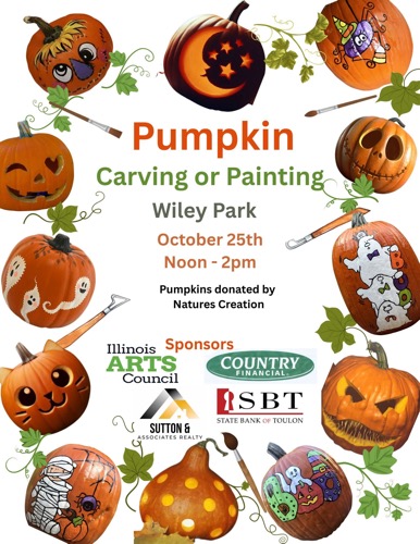 Wiley Park will come alive with creativity on October 25th as a community pumpkin carving and painting event welcomes families from noon until 2 PM. Hosted by the Galva Arts Council, participants can choose from a selection of pumpkins ...