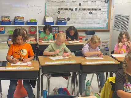 Lacy Todd of The Crafty Coop came to Mrs. Baxter’s class today for Adopt a Classroom. They painted leaves and talked a…
