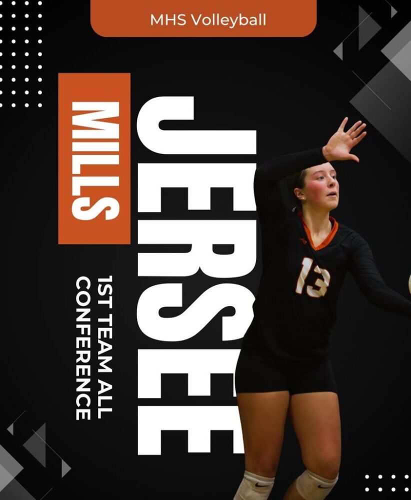 Congratulations, BOMBERS!!! 🧡🖤🧡We are so incredibly proud of these amazing young women!! Congratulations to Jersee Mills and Jordan Hines (1st Team All Conference) and Cadence Hotz (2nd Team All Conference). Outstanding job and volleyball season, ladies!! GO BOMBERS!!