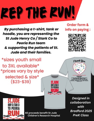 Supporters in Henry and Stark County have the opportunity to contribute to a vital cause through a special apparel sale. T-shirts, tanks, and hoodies featuring unique designs crafted by the Bradford 2025 PreK class are now available online. Proceeds ...