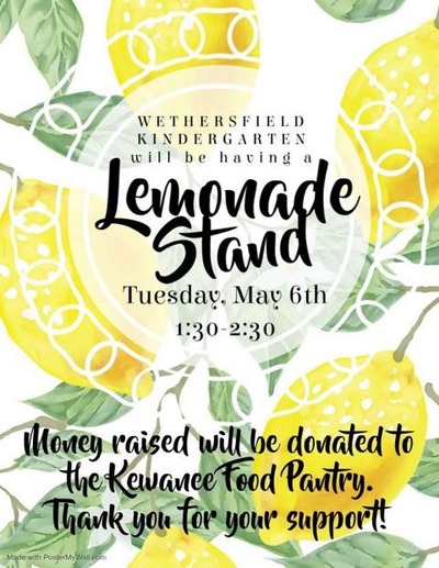 Wethersfield Kindergarten Students to Host Lemonade Stand Today to Benefit Food Pantry