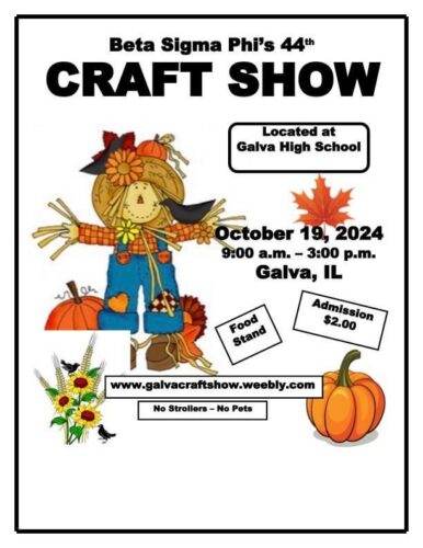 The 44th Annual Beta Sigma Phi Craft Show is on October 19th from 9 AM to 3 PM at Galva High School. This is the biggest one-day craft show in Henry County. Admission is $2. There are nearly 100 quality vendors registered to attend and enjoy a BBQ lunch that includes homemade desserts. All proceeds are donated back to the community.