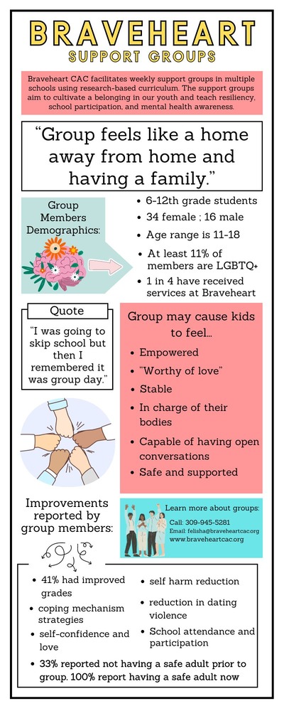 “Hosting these support groups allows us to create a community where young people feel seen, heard, and valued,” said Taylor Hager, Group Facilitator at Braveheart Children’s Advocacy Center. “We aim to empower our participants by providing them with the tools and support they need to navigate their personal challenges and build stronger, more resilient futures.”