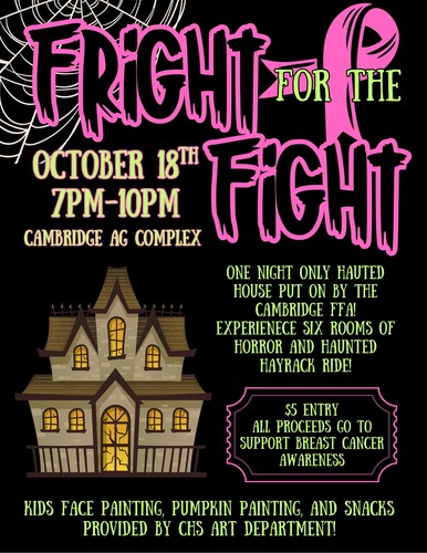 For one night only, the Cambridge FFA Chapter is transforming the Ag Complex into a spine-chilling haunted house on Saturday, October 18th, from 7 to 10 PM. For $5, visitors can brave six terrifying rooms and embark on a haunted hayrack ride around the bowl. Families with little ones won’t miss out—kids can enjoy crafts, treats, and face painting in the conference room. Organizers encourage community members of all ages to join the fun, promising both spooky thrills and creative activities. Don’t miss this unique opportunity to join the fight against breast cancer while enjoying Halloween festivities in Cambridge.