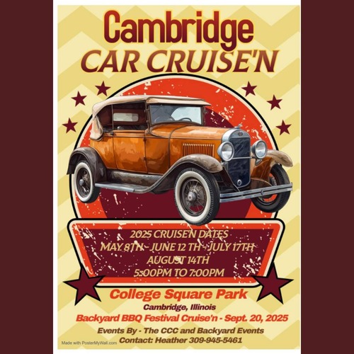 Exciting news for car enthusiasts in Cambridge, Illinois! The 2025 Car Cruise’n events are coming to College Square Park with dates set for July 17 and August 14. Each event will run from 5 to 7 PM, featuring classic cars, friendly faces, and an enthusiastic community atmosphere. In addition to these events, a special Backyard BBQ Festival Cruise’n will take place on September 20th, offering an enjoyable fusion of cars and cuisine. For further information, reach out to Heather at 309-945-5461.