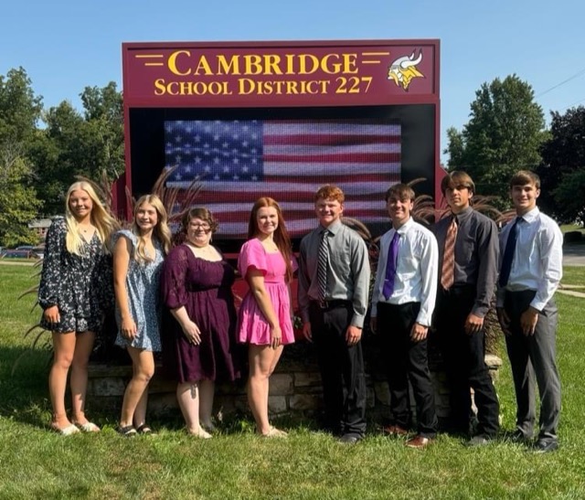 Meet the 2024 Cambridge High School Homecoming Court. Congratulations Jade Markey, Kerrigan Lewis, Ash Curphey, Olivia Brown, Tucker Snook, Owen Anderson, Rowdy Beam, Roy Sandberg.