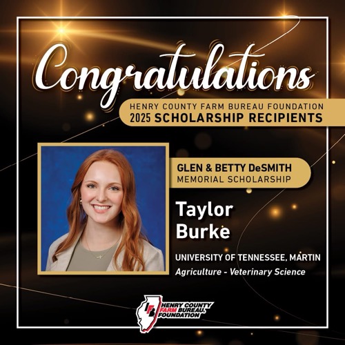 The Henry County Farm Bureau is shining a spotlight on achievement for three outstanding students—David Mock, Paige Sierens, and Taylor Burke—who have been honored as recipients of the Glen and Betty DeSmith Memorial Scholarship. Recognized for their dedication, passion, and academic excellence, these students represent the future leadership of Henry County. Each week, Scholarship Sunday highlights the area’s brightest, inspiring the community to support and applaud young achievers. Their journeys are just beginning, and all eyes are on the path they’ll forge ahead. Tune in next week for more local success stories as Henry County continues to celebrate its promising scholars.