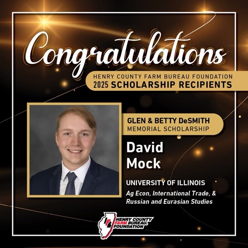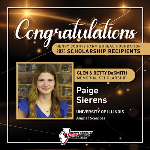 The Henry County Farm Bureau is shining a spotlight on achievement for three outstanding students—David Mock, Paige Sierens, and Taylor Burke—who have been honored as recipients of the Glen and Betty DeSmith Memorial Scholarship. Recognized for their dedication, passion, and academic excellence, these students represent the future leadership of Henry County. Each week, Scholarship Sunday highlights the area’s brightest, inspiring the community to support and applaud young achievers. Their journeys are just beginning, and all eyes are on the path they’ll forge ahead. Tune in next week for more local success stories as Henry County continues to celebrate its promising scholars.