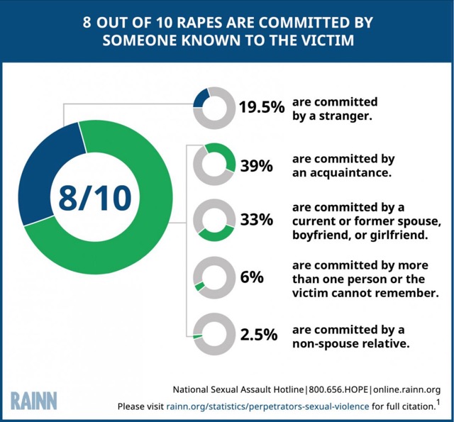Rape, Abuse & Incest National Network (RAINN) is the nation’s largest anti-sexual violence organization. According to RAINN, 33% of sexual assaults are committed by a current or former spouse, boyfriend or girlfriend.