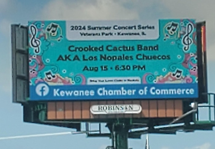The Concert in the Park for Thursday, August 15th, is moved to the Flemish Club, due to the weather forecast. You can still enjoy the Crooked Cactus Band at 6:30 PM inside The Flemish American Club, located at 313 N. Burr Blvd.
