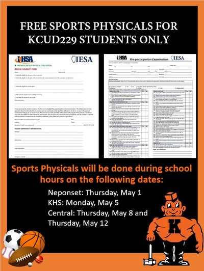 KCUD229 students can take advantage of free sports physicals offered during school hours this spring. Exams will be held at Neponset on May 1st, at KHS on May 5th, and at Central on both May 8th and May 12th. These assessments meet all pre-participation requirements for athletic activities, ensuring students are cleared to join upcoming school sports. Parents and guardians are encouraged to remind student athletes to attend the scheduled dates. Parents should complete and sign the required form, which is available online and in school offices. Don’t miss this opportunity to complete necessary health checks at no cost.