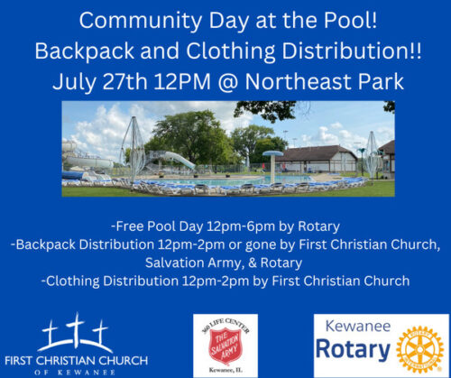 In Kewanee, an exciting community event is just around the corner! On July 27, 2024, locals can enjoy a free afternoon at Northeast Oasis Pool, thanks to a collaboration between the Rotary Club of Kewanee, First Christian Church, Salvation Army, and Kewanee Park District. From 12 until 6 PM, families are invited to cool off and have fun. Additionally, from 12 to 2 PM, there will be a backpack and clothing distribution for school-aged children, while supplies last. This initiative is part of a broader effort to support local families and promote community wellness. Don’t miss out on this wonderful opportunity to connect with your community and enjoy the summer!