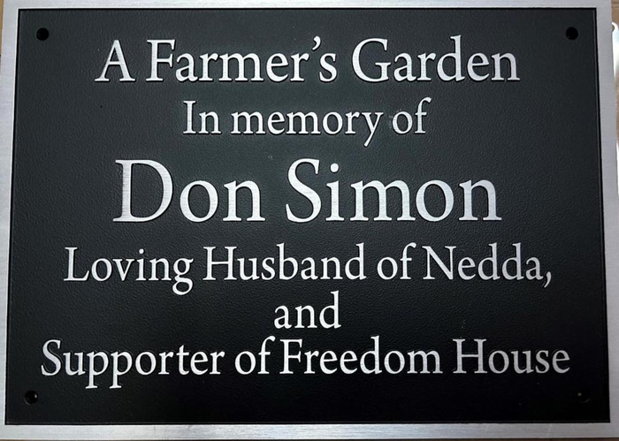 You can help Freedom House continue to provide free survivors of domestic or sexual assault by purchasing a personalized engraved brick for the new Farmer’s Garden. The bricks will be on the south side of the Nedda and Donald Simon Conference Center.  “Farmer’s Garden. Thank you for your support.” Visit Freedom House here to order bricks, or order directly here. The charcoal-colored bricks will outline the waking path, and the natural gray bricks will be used for the inner pathway.