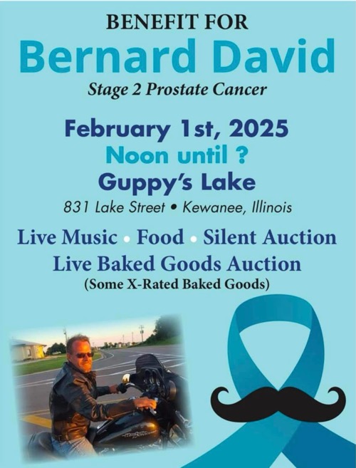 In an inspiring community effort, residents of Kewanee are rallying to support Bernard David, who is currently battling stage 2 prostate cancer. Bernard will need to miss a lot of work for treatments and appointments and incur medical bills as well. A special benefit event is set to take place on February 1, 2025, at Guppy’s Lake. Attendees can look forward to an array of activities, including live music and food stands. Highlighting the event, there will be both silent and live auctions, featuring an assortment of baked goods. All proceeds from the event will aid Bernard in his treatment journey. For those interested in extending further support, t-shirts are available for purchase at $20 each, with payment due by January 25th. To order, please contact Alyssa Washburn at 309-525-3770 or Kris Jackson at 309-854-2477. You can also donate to the Spot Fund started for Bernard David here.