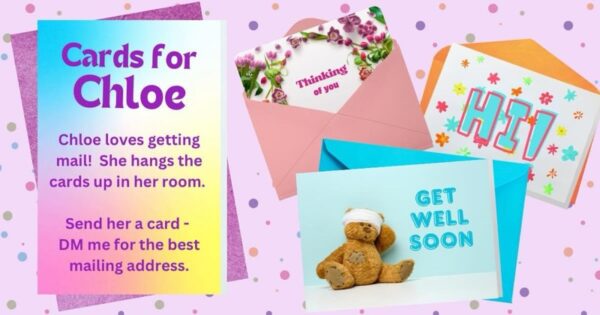 If you would like to give Chloe a get-well card, drop them off in the morning at the Regional Media Studios, located at 101 W. Central Blvd. The cards will be collected and delivered to Chloe at the hospital in Peoria.