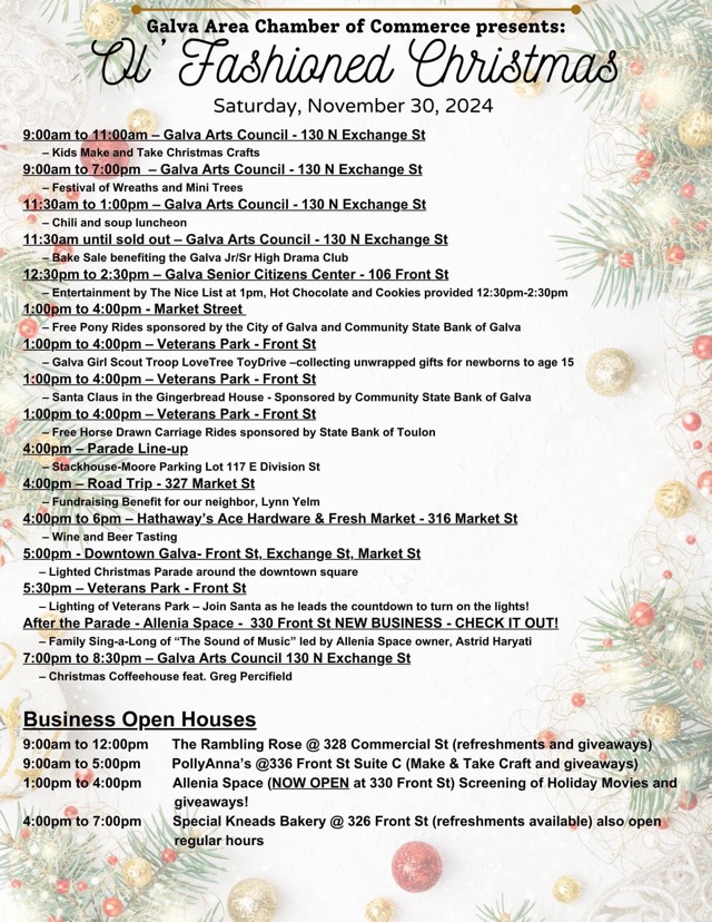 Galva Chamber of Commerce Ol’ Fashioned Christmas on November 30, 2024