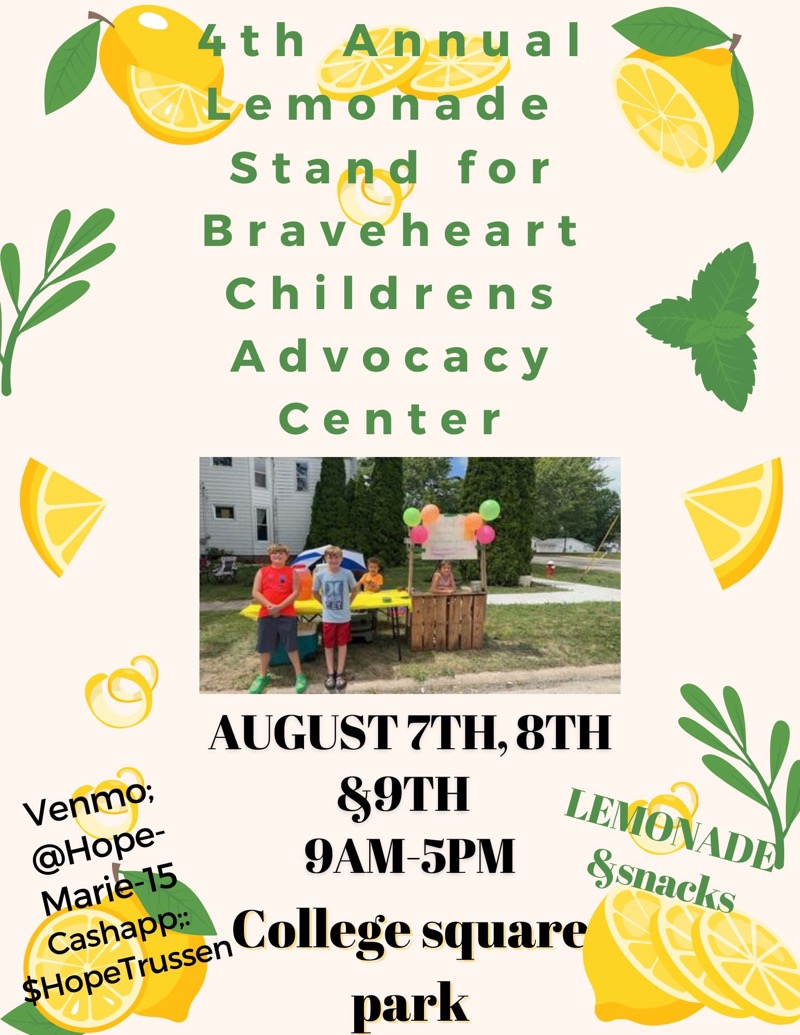 Group of Kids Hosting Fourth Annual Lemonade Stand for Braveheart Children’s Advocacy Center
