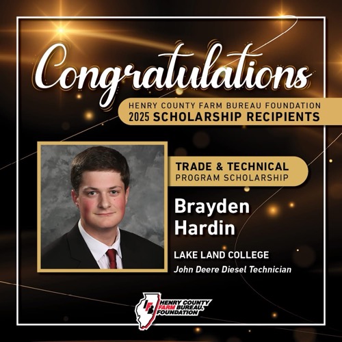 The Henry County Farm Bureau Foundation is celebrating its 2025 Trade and Technical Program Scholarship recipients. Brayden Hardin, Jade Markey, and Jacob Conrad have each been recognized for their commitment, passion, and achievements in pursuing technical education. The foundation highlights their promising futures and applauds their dedication to furthering their skills within their chosen fields. Community members are encouraged to keep an eye out for more uplifting stories throughout the day and next week, as the foundation continues to spotlight local students making strides toward bright and impactful careers. Congratulations to these outstanding individuals on their accomplishments.