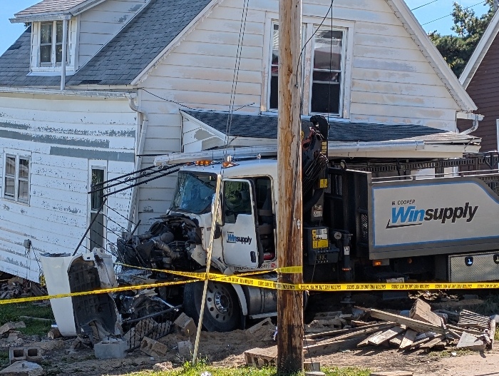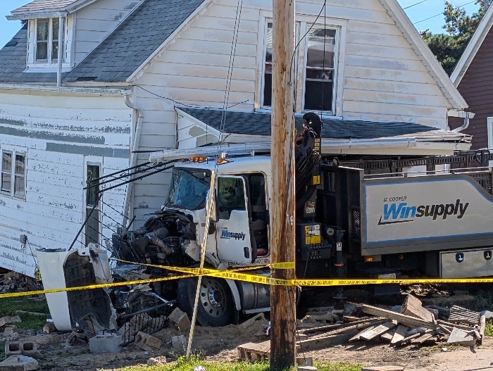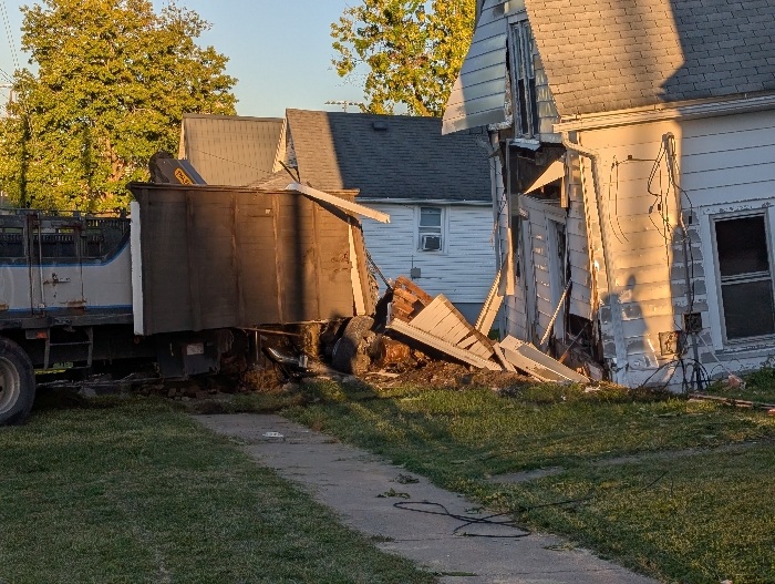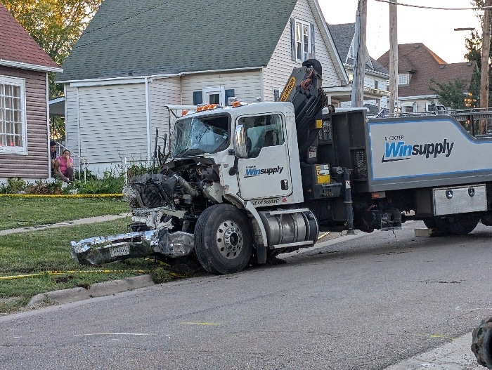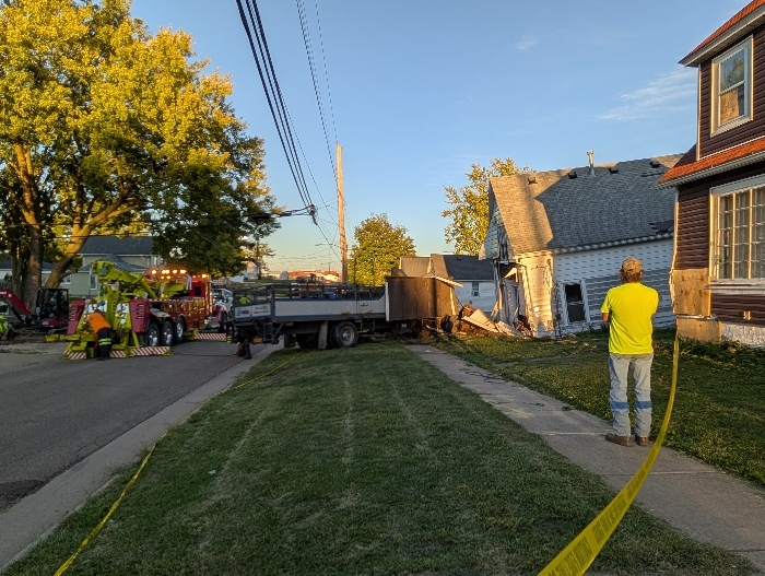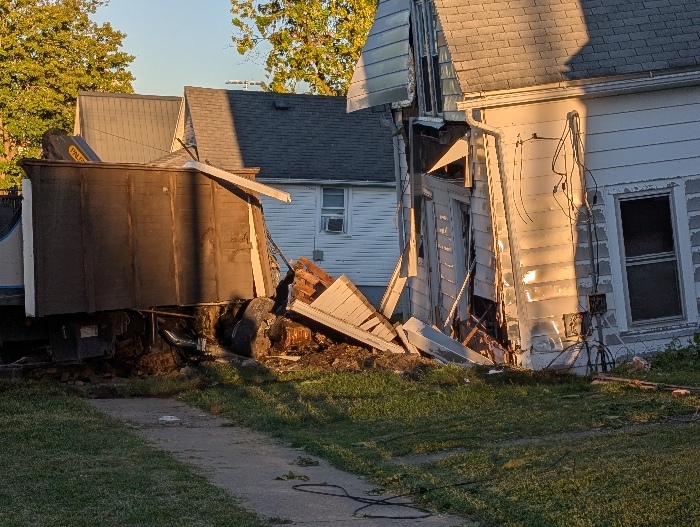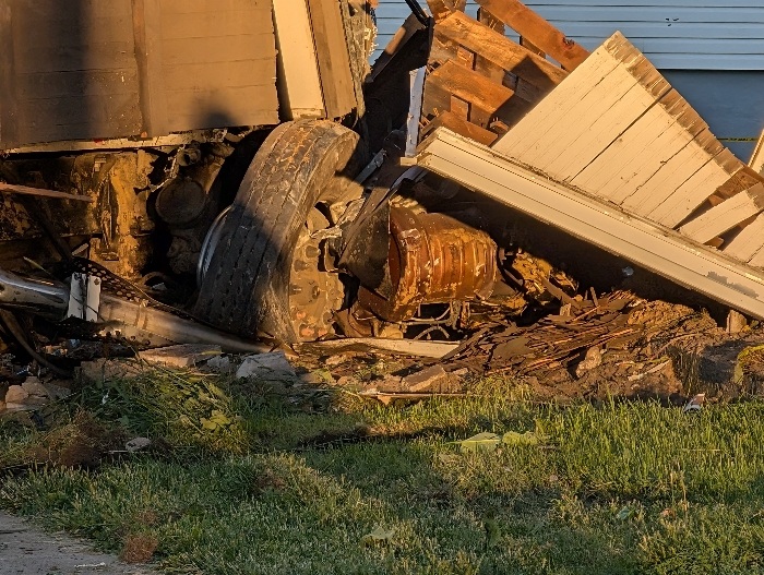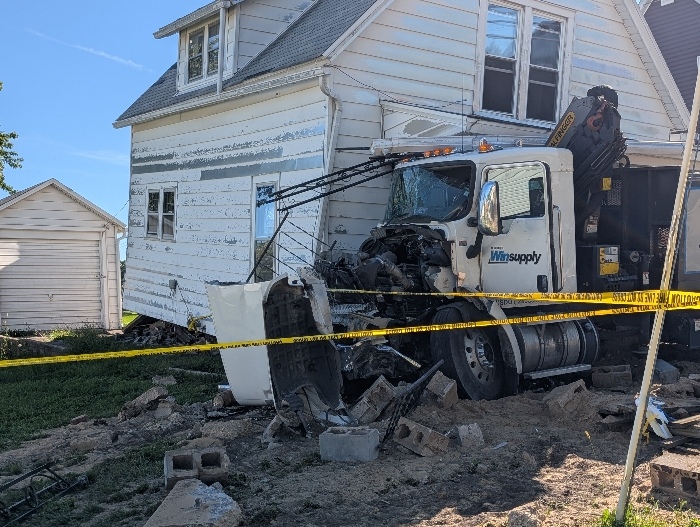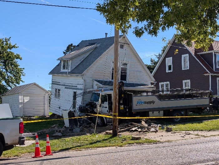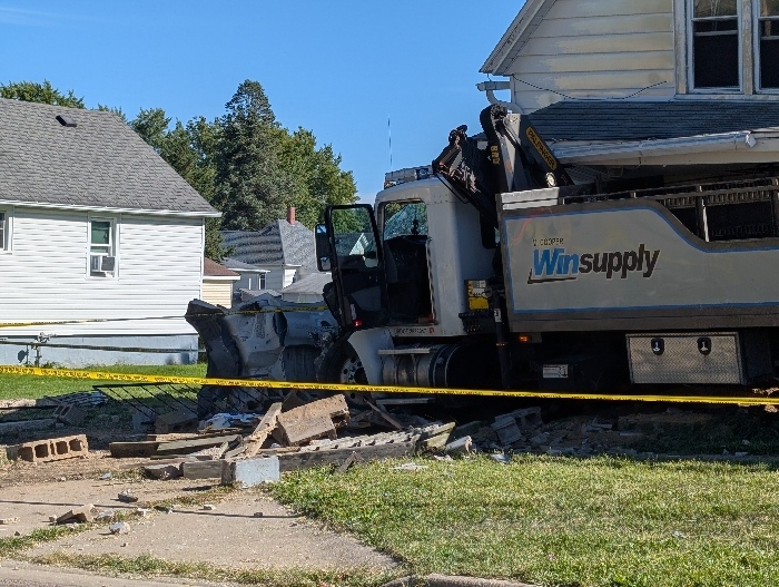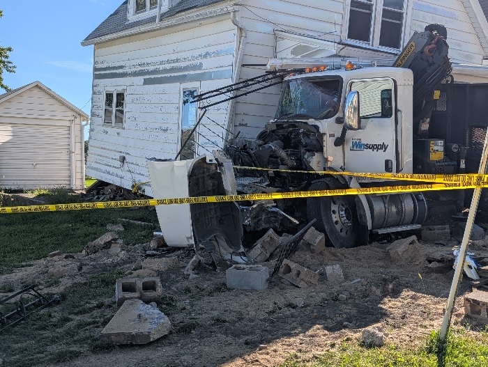 According to a press release from the Kewanee Police Department, “A Win Supply Companies straight bed semi-truck was traveling eastbound in the 700 block of East 2nd Street (Route 34). At the intersection of East 2nd Street and Northeast Street, the vehicle exited the roadway, traveling through the front yard of a residence located in the 800 block of East 2nd Street. The truck continued its path eastbound, striking the corner of a neighboring residence, causing damage to its foundation and siding. The vehicle continued eastbound and collided with a second residence, coming to a stop while embedded in the structure.”