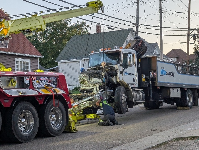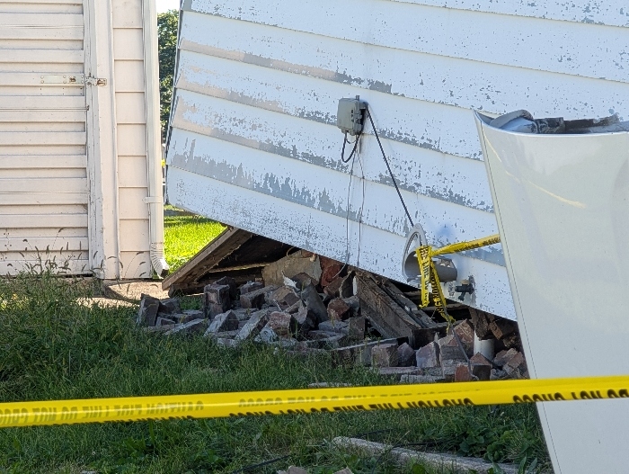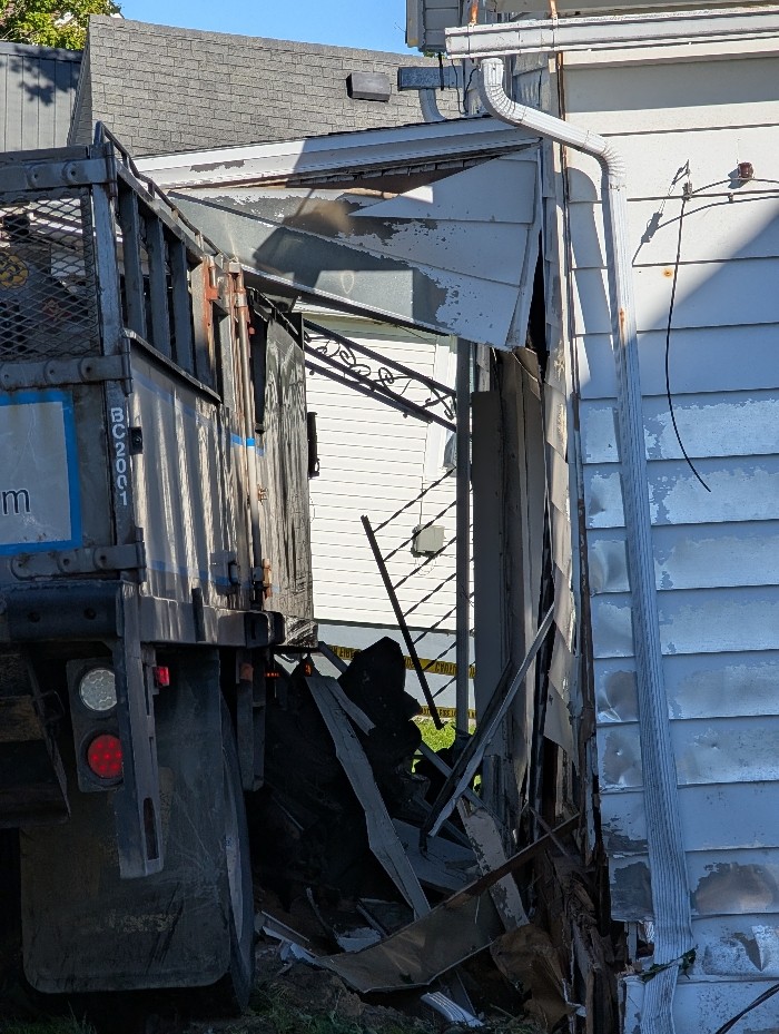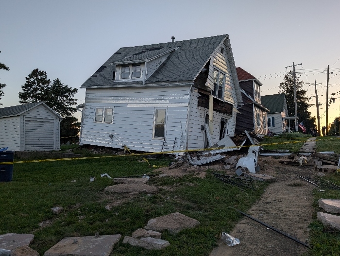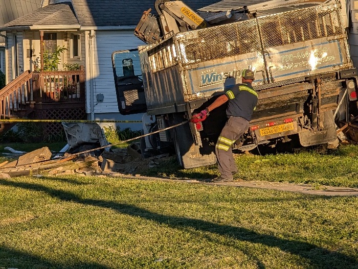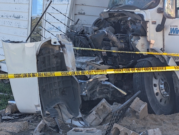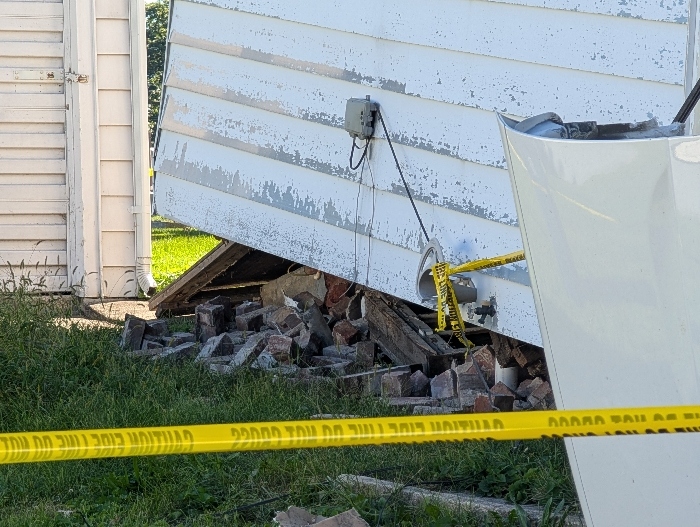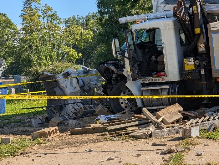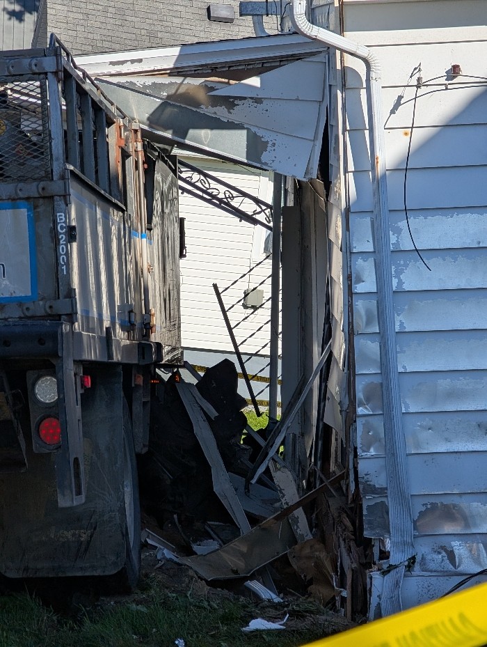 According to a press release from the Kewanee Police Department, “A Win Supply Companies straight bed semi-truck was traveling eastbound in the 700 block of East 2nd Street (Route 34). At the intersection of East 2nd Street and Northeast Street, the vehicle exited the roadway, traveling through the front yard of a residence located in the 800 block of East 2nd Street. The truck continued its path eastbound, striking the corner of a neighboring residence, causing damage to its foundation and siding. The vehicle continued eastbound and collided with a second residence, coming to a stop while embedded in the structure.”
