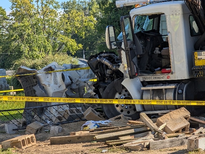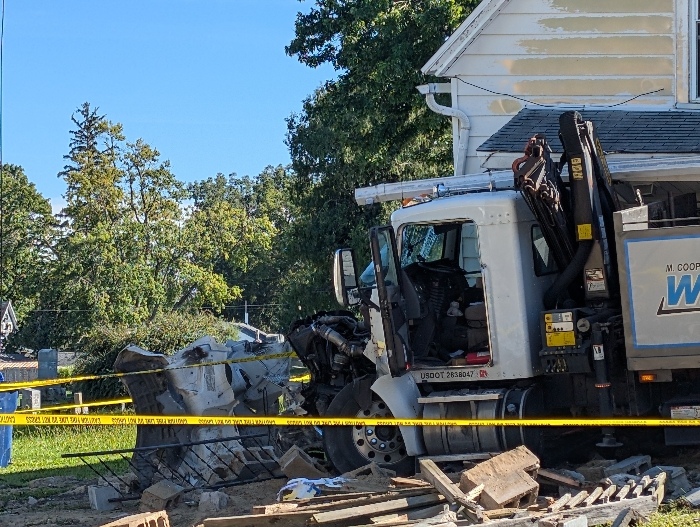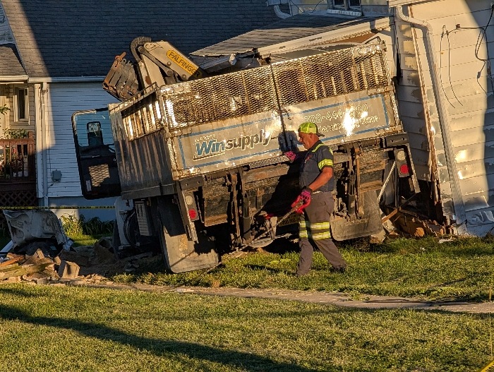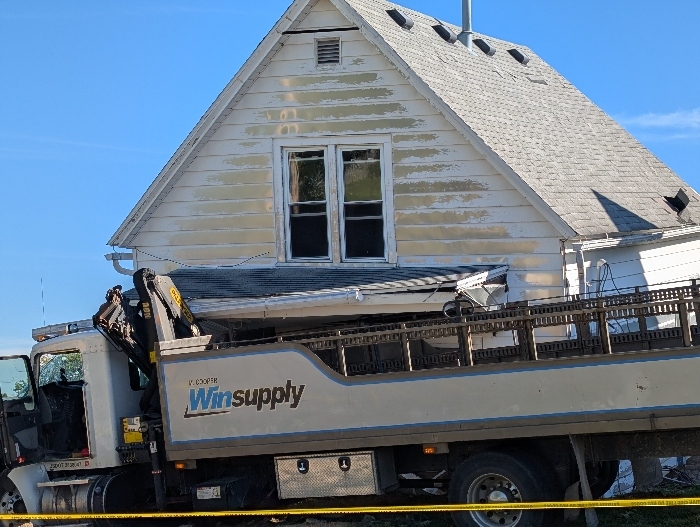 Bill Conner purchased the house in 2014 and has rented to numerous people and families. Mr. Conner and his team were renovating the property. He said the inside was finished on Monday and they planned to start on the outside so the house could be listed for sale. They were in the house Tuesday morning to gather some items. He said he is thankful they weren’t in the house and that there weren’t any kids walking when it happened. He said he hopes the driver of the truck is ok. The house was built in 1907.