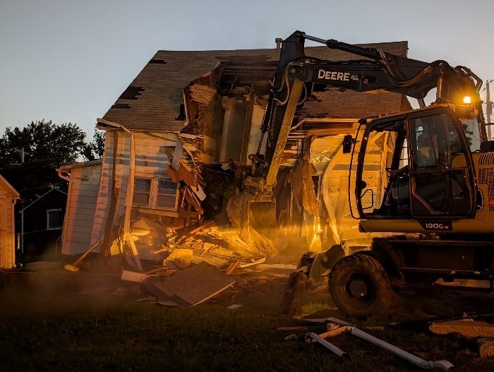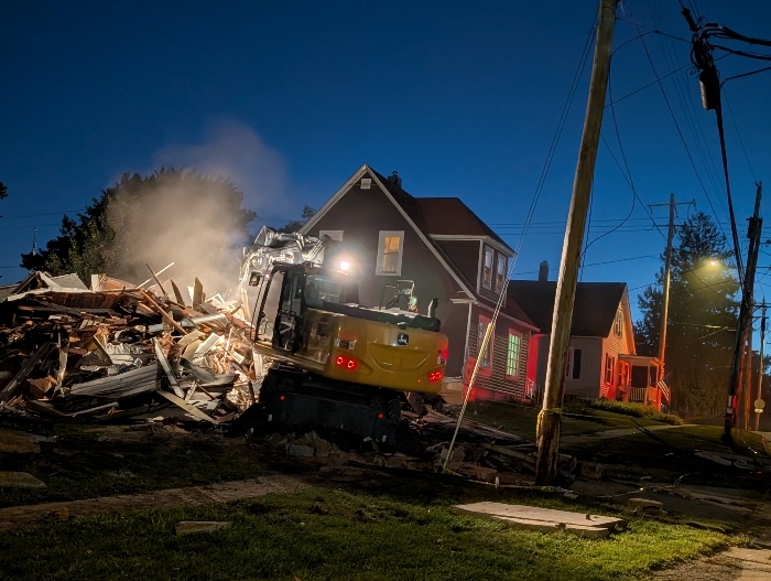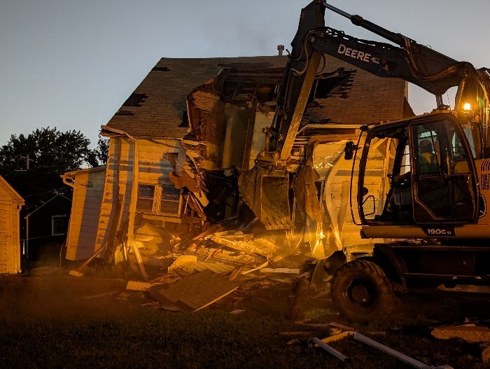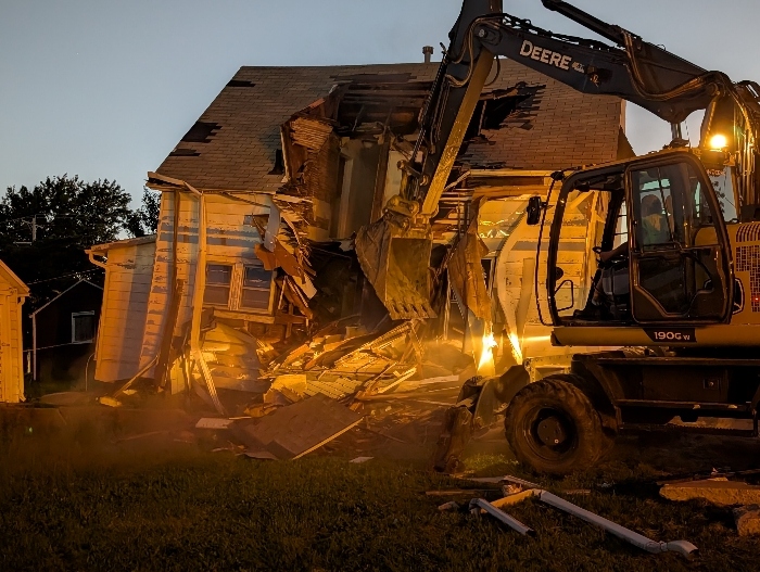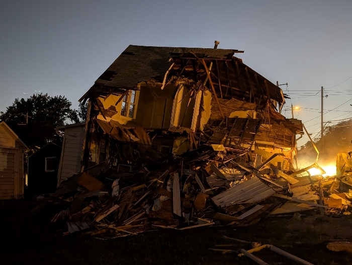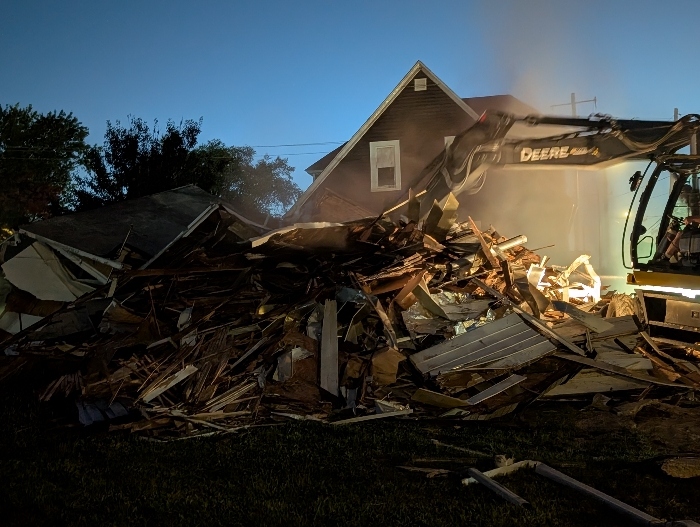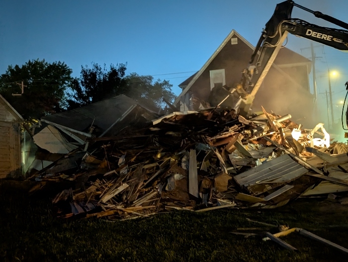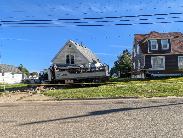 City of Kewanee workers demolished the house hit by the truck today, ensuring the house wouldn’t collapse and injure bystanders. The Kewanee Fire Department and Kewanee Police Department were dispatched to the call at 2:04 PM for a truck that struck a house. The driver of the truck was injured, but we do not have any updates on his condition. According to the Kewanee Police Department, the cause of the accident remains under investigation. The Kewanee Fire Department said they could not gather any information regarding the cause of the accident from the truck driver. The truck left the roadway, drove between two utility poles, drove by the first house on the corner, struck the next house to the east, and came to rest after hitting the house located at 807 East 2nd Street. We will provide updates as we receive them.