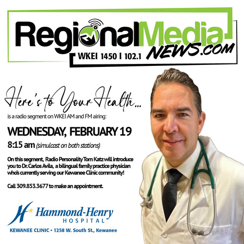 Tune in to WKEI 1450 AM and 102.1 FM on Wednesday, February 19th, for an in-depth discussion with Dr. Avila. Dr. Avila is now accepting appointments at 309.853.3677. Visit the clinic at 1258 W. South Street, Kewanee.