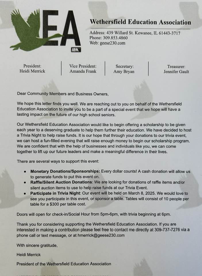 On March 8th, the Wethersfield Education Association is set to host their inaugural trivia night at Midland Golf Club to establish a scholarship fund for deserving high school graduates. The event kicks off at 5 PM with a social hour followed by trivia games starting at 6 PM. Attendees can enjoy a night of brain-teasing fun, raffles, and refreshments. Participation is set at $300 for a table of ten. This event promises not only a fantastic evening out but also a chance to contribute to a noble cause. For more information, registration details, or to donate, please contact Heidi Merrick at [email protected] or 309-737-7276. Adults only, please. Join in to support local students in reaching their academic goals!
