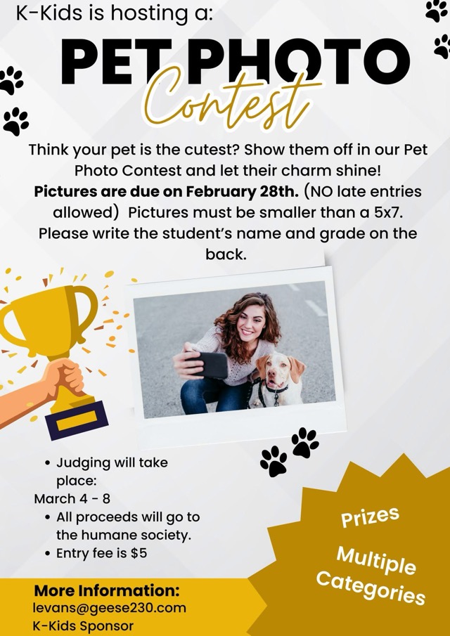 Attention pet enthusiasts! The Wethersfield K-Kids Pet Photo Contest is underway, offering a delightful opportunity for young students to showcase their beloved animal companions. Submit a photo no larger than 5×7 inches by February 28, 2025, ensuring the student’s name and grade appear on the reverse side. The $5 entry fee benefits the Henry County Humane Society, creating a positive impact for our furry friends. Judging occurs March 4th through 8th, so capture your pet’s best pose! Contributions of pet toys for the winner’s basket are welcomed. For further details, contact [email protected]. Celebrate your pet’s charm today!