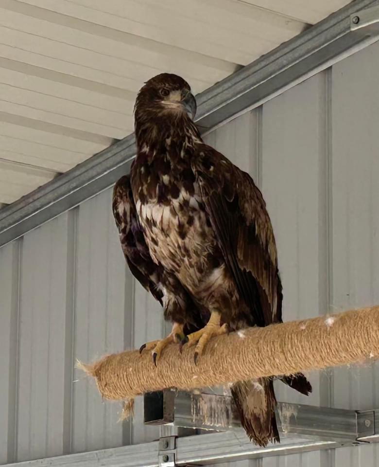 2024, and an evaluation followed after she was clean and dry. She was released on Saturday, July 13, 2024, during the class reunion for Wyanet Schools. The school is no longer standing, but it will always be the Wyanet Eagles to them. Miss Athena was ready to go and flew out of the kennel.