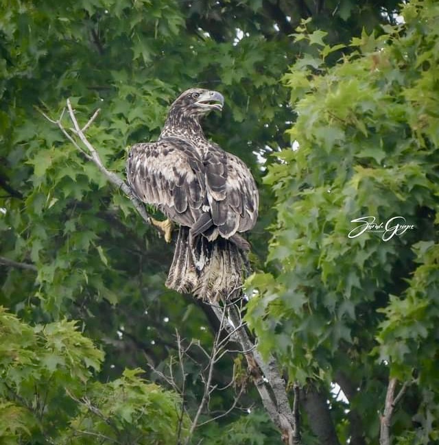 A juvenile Bald Eagle stuck in a waste treatment sludge pond in Peoria returned to the wild on Saturday. Miss Athena was rescued from a sledge pond, also known as human waste, and was transported to Tammy Yarger at the Hog Capitol Wildlife Rescue and Rehab. She got a bath and medication in May