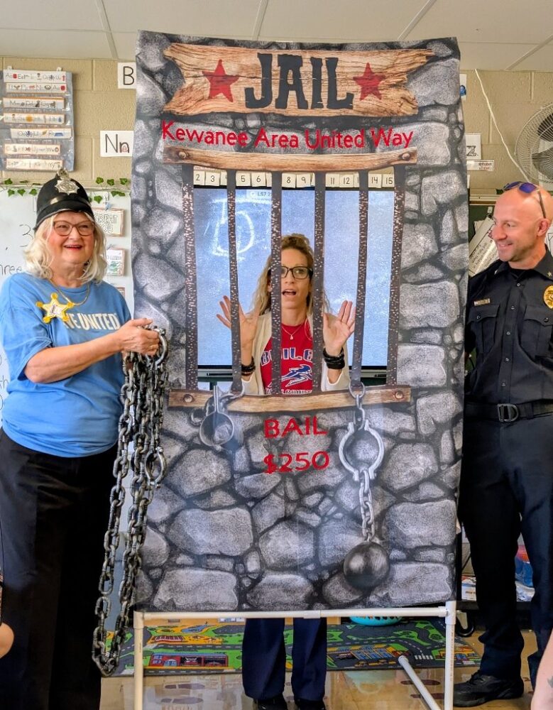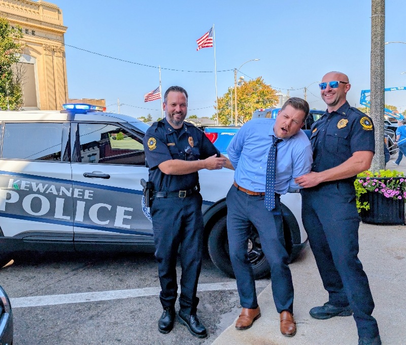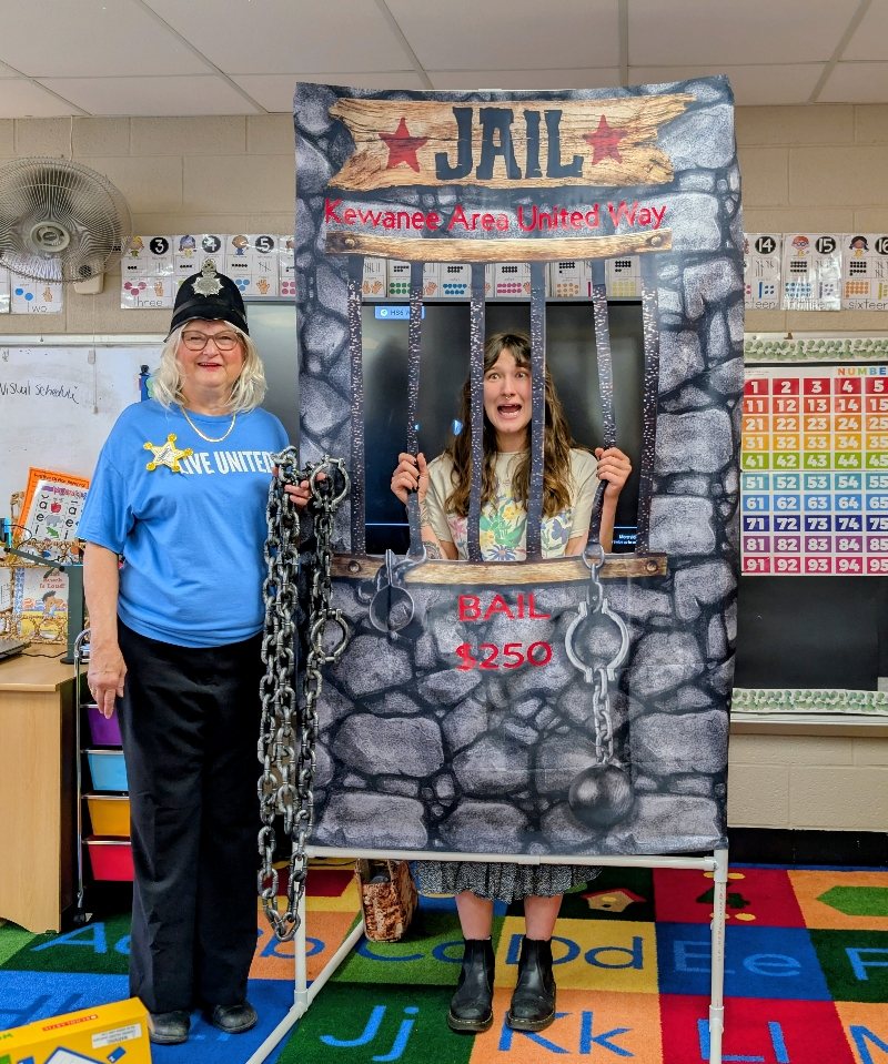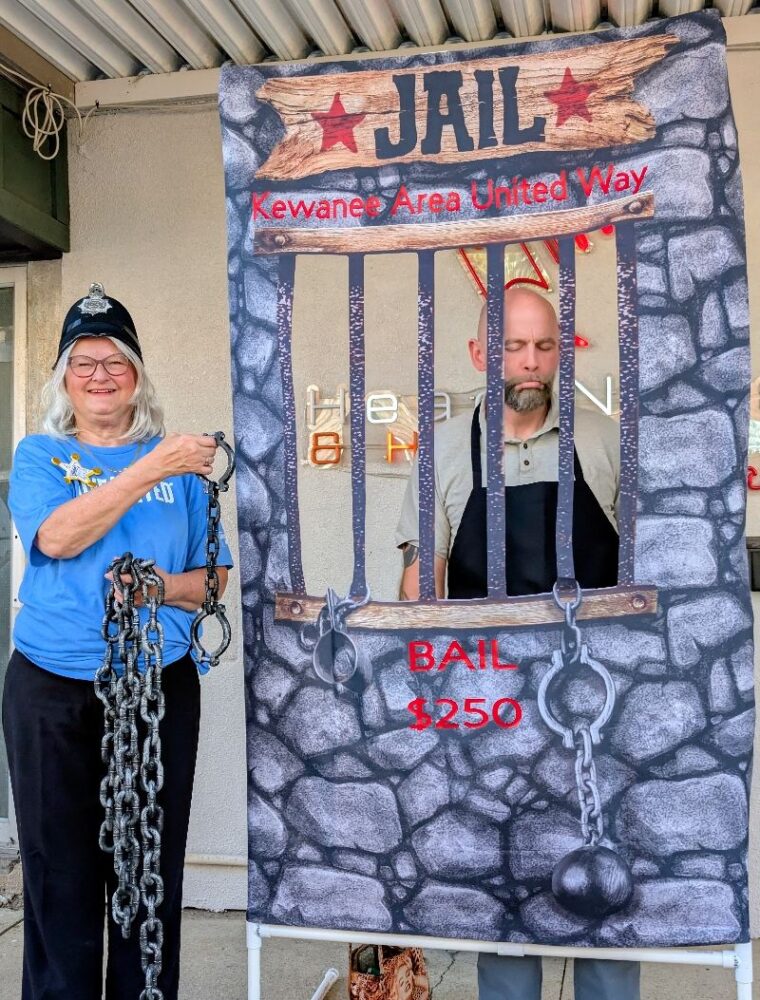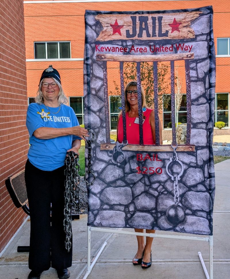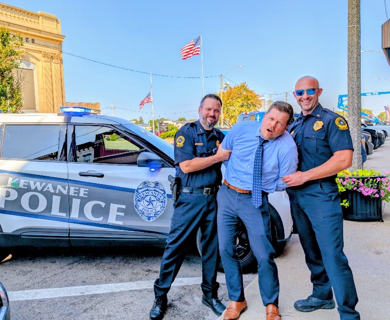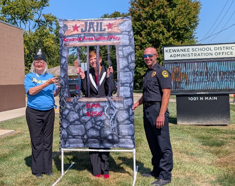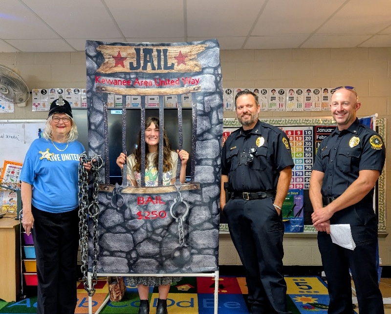 Pretend handcuffs, plenty of laughter, and a little resisting happened in Kewanee as the Kewanee Area United Way (KAUW) held the “Jail and Bail” fundraiser on September 11th at 9 AM. With help from Kewanee Police Chief Kijanowski and Deputy Chief Minx, the KAUW crew, along with Regional Media, headed to each business or school to “arrest” the designated volunteer and collect their bail. Local schools and businesses, including Belle, Fairview, State Farm, McDonald’s, Mel Foster, Happy Joe’s, OSF, Head Nods and High Fives, Edward D. Jones, Union Federal, Gustafson Ford, Murphy’s, Kewanee School, Galva School, and Braveheart. Participants include Stephanie and Haley, Sara Davis, Tanner Nichols, Lisa Johnston, Mary Jo Gibson, Holly Gustafson Hicks, Kevin Newton, Eric Ellenberger, Mike Miler, Jon Looney, Chuck Forsythe, Gwen Murphy, Rebecca Baney, Felisha Rodgers, and Marland Rachel.