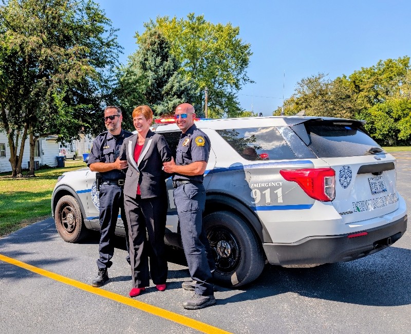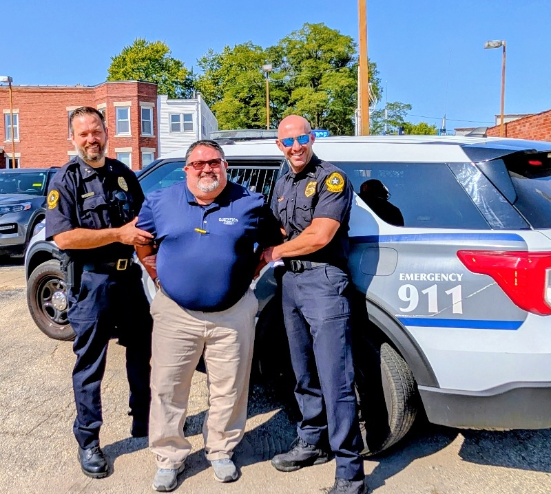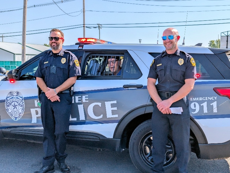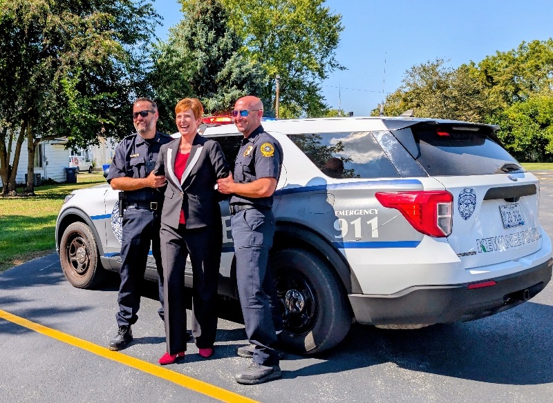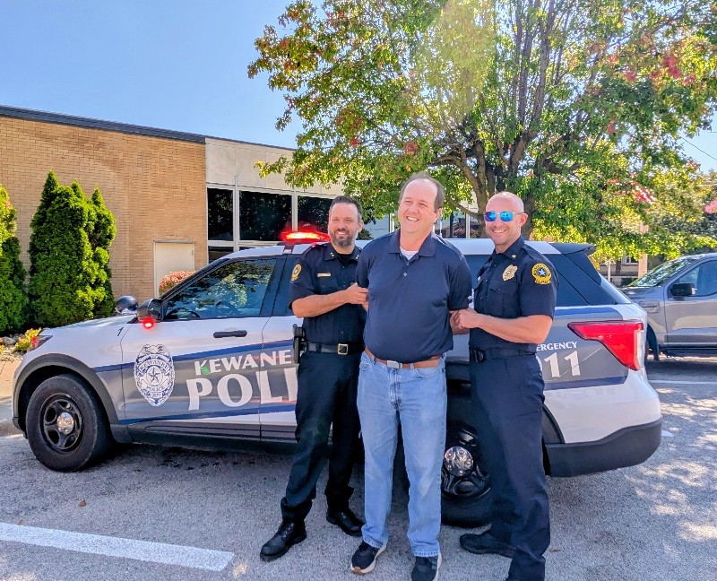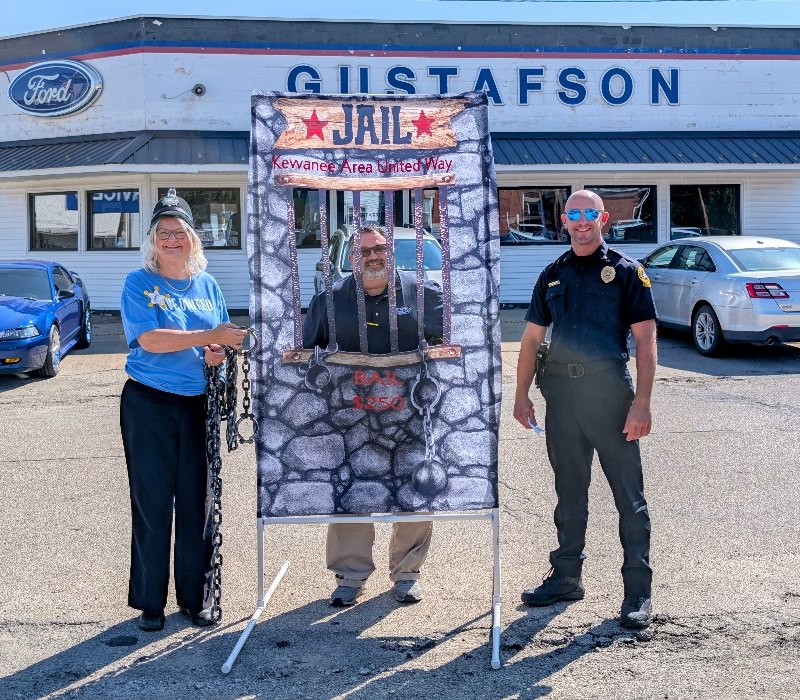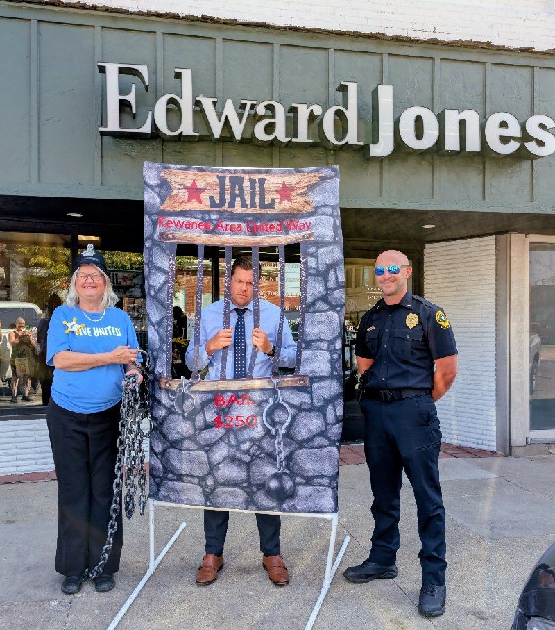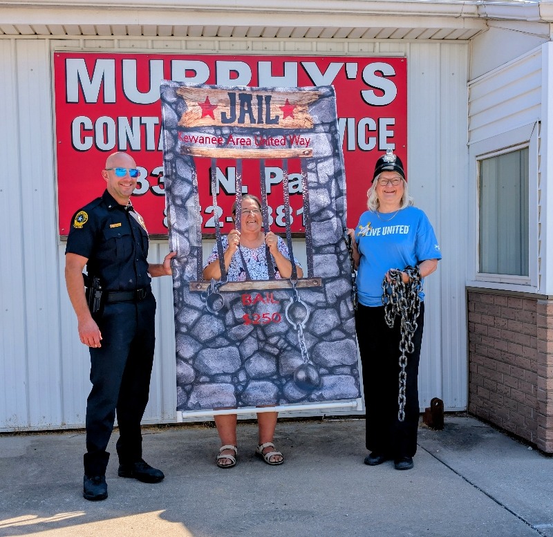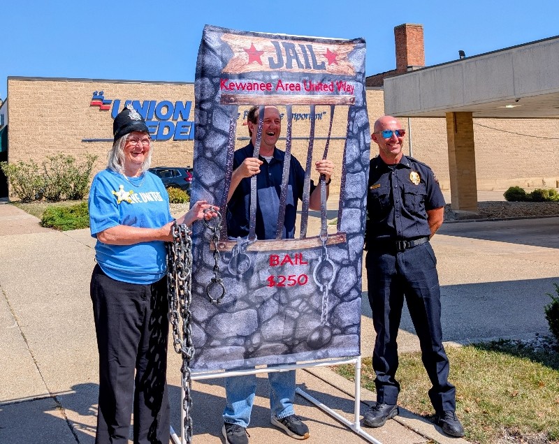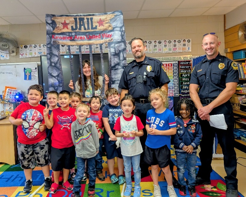 Pretend handcuffs, plenty of laughter, and a little resisting happened in Kewanee as the Kewanee Area United Way (KAUW) held the “Jail and Bail” fundraiser on September 11th at 9 AM. With help from Kewanee Police Chief Kijanowski and Deputy Chief Minx, the KAUW crew, along with Regional Media, headed to each business or school to “arrest” the designated volunteer and collect their bail. Local schools and businesses, including Belle, Fairview, State Farm, McDonald’s, Mel Foster, Happy Joe’s, OSF, Head Nods and High Fives, Edward D. Jones, Union Federal, Gustafson Ford, Murphy’s, Kewanee School, Galva School, and Braveheart. Participants include Stephanie and Haley, Sara Davis, Tanner Nichols, Lisa Johnston, Mary Jo Gibson, Holly Gustafson Hicks, Kevin Newton, Eric Ellenberger, Mike Miler, Jon Looney, Chuck Forsythe, Gwen Murphy, Rebecca Baney, Felisha Rodgers, and Marland Rachel.