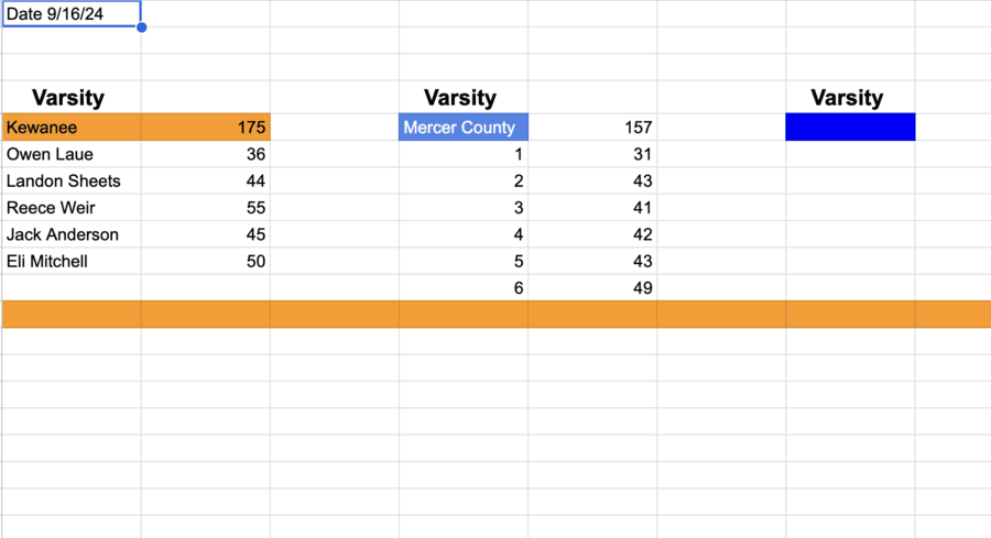 HomeSportsHigh SchoolKewanee Boilermakers Golf Fall to Mercer County in a Close GameKewanee Boilermakers Golf Fall to Mercer County in a Close GameWed, September 18, 2024 by Jennifer RussellSHARE NOW The Kewanee Boilermakers fell short against Mercer County. Mercer County scored 157, and Kewanee scored 175. Owen Laue scored a second-place overall score of 36.