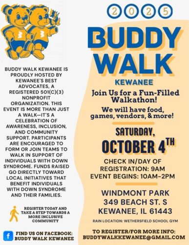 Kewanee’s Best Advocates is a 501(c)(3) nonprofit organization and is set to host the Buddy Walk®, a vibrant community event uplifting individuals with Down syndrome. Created by the National Down Syndrome Society, the Buddy Walk® has become a leading movement for advocacy and public awareness. All proceeds benefit local efforts supporting individuals with Down syndrome and their families. The event promises unity, inclusion, and joyful community spirit.