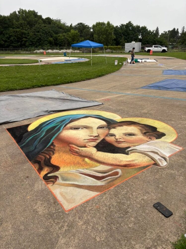Bird’s Eye View Aerial Service provided some views of the chalk art from above.