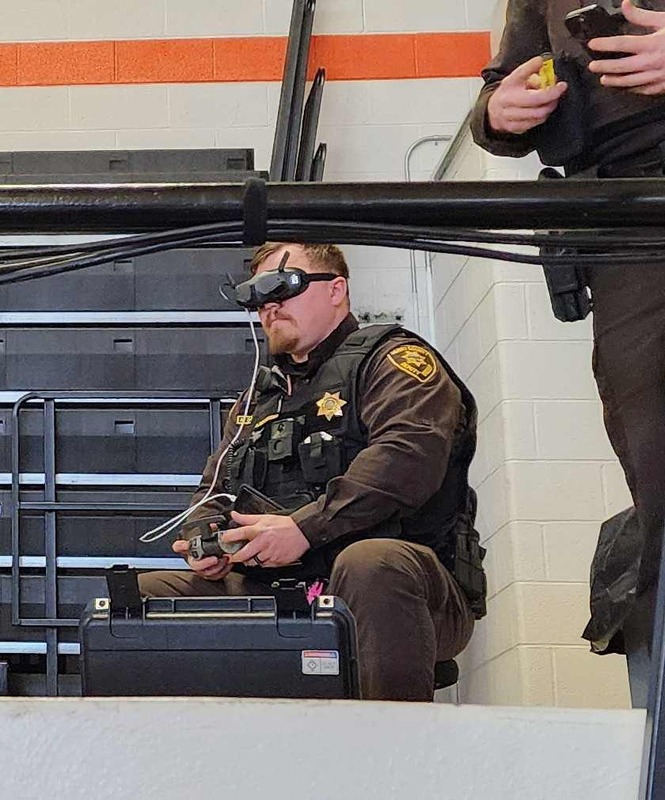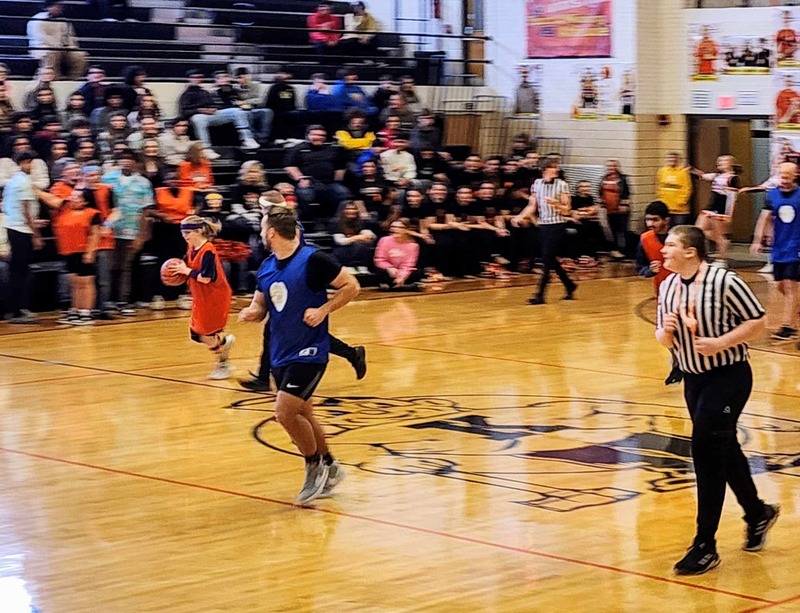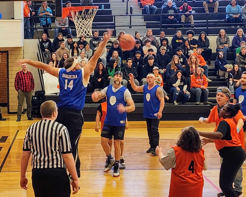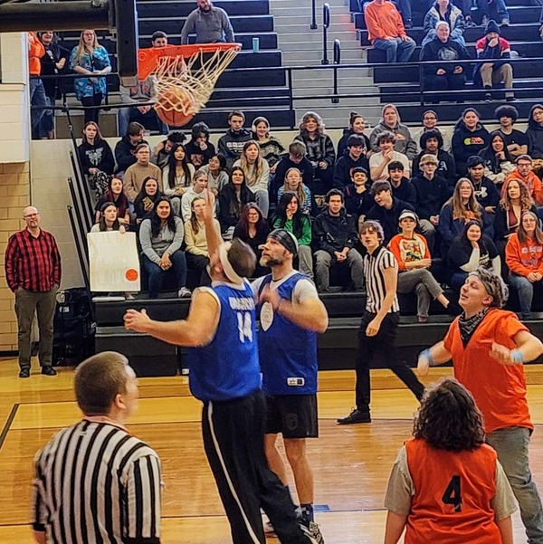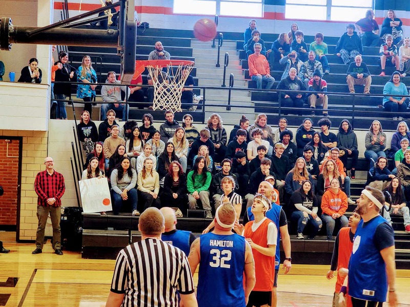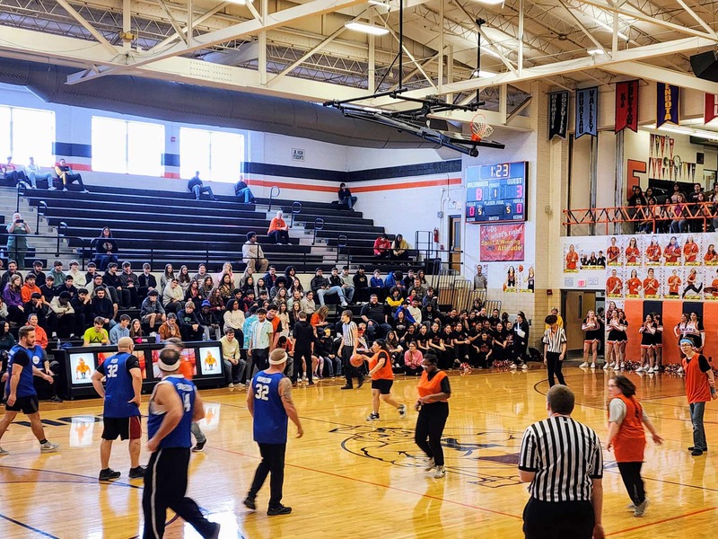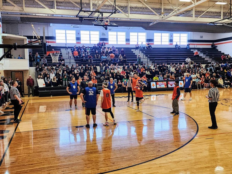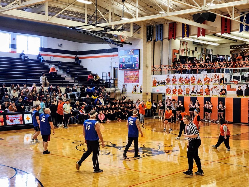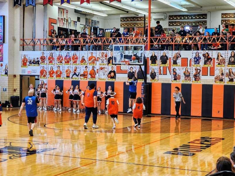 The Kewanee Police Department took on the Kewanee Life Skills Boilermakers in a basketball game today, and the Boilermakers won again for the second year in a row. The Life Skills Basketball Team won 39-37 against the KPD “Dunkin Doughnuts”.  Both teams had their new basketball jersey shirts on this year, and the players and students enjoyed the spirited game. The Kewanee High School Band, Cheerleaders, and Pom Poms supported the Life Skills Boilermakers during the assembly and game.  The students, teachers, and spectators cheered the Boilermakers to their victory.  You can watch the game and the assembly here. Deputy Sovanski from the Henry County Sheriff’s Office deployed the drone, which entertained some students in the stands when they felt the air as the drone flew overhead. Congratulations to the Life Skills Team and excellent work by both teams.  The Life Skills Team won last year, which was the first year for the game, 54-51. We can’t wait to see next year’s game.
