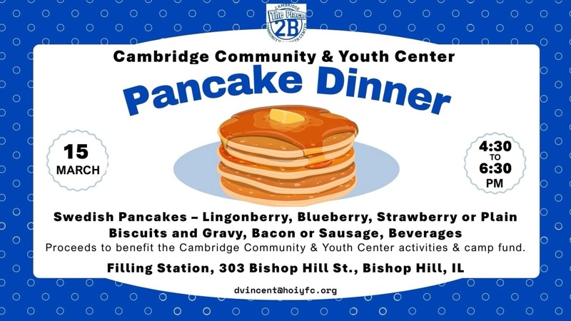 The Cambridge Community and Youth Center is hosting a delightful pancake dinner at the Filling Station in Bishop Hill on March 15, 2025, from 4:30 to 6:30 PM. Enjoy a selection of Swedish pancakes adorned with a variety of tempting toppings, along with traditional biscuits and gravy, bacon, or sausage, and accompanied by refreshing drinks. This culinary event aims to raise funds for the center’s activities and camp initiatives, directly benefiting the local youth programs. It’s a perfect opportunity for community members to indulge in delicious food while supporting a worthy cause. Head over to 303 Bishop Hill Street to participate in this flavorful and philanthropic gathering.