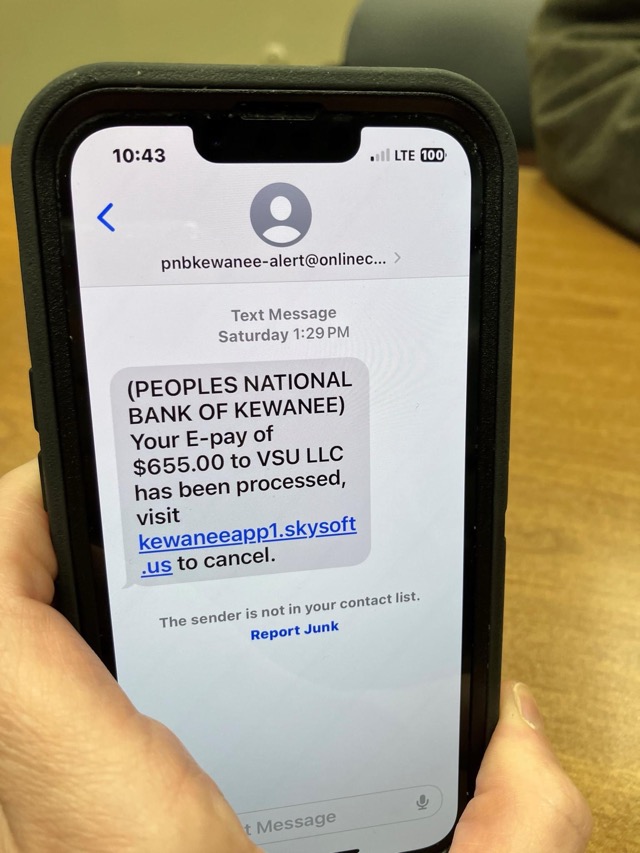 Peoples National Bank of Kewanee posted on their Facebook page about a phishing attempt some people in the general area have received. If you receive a text, such as in the picture below, do NOT click the link. These messages are meant to steal your personal information and/or your money. If you receive any type of communication that appears to be from the bank but looks suspicious, Peoples National Bank said to contact them. “We are here to protect you and your accounts from being hacked. Our text messages NEVER include links to approve or cancel transactions.”