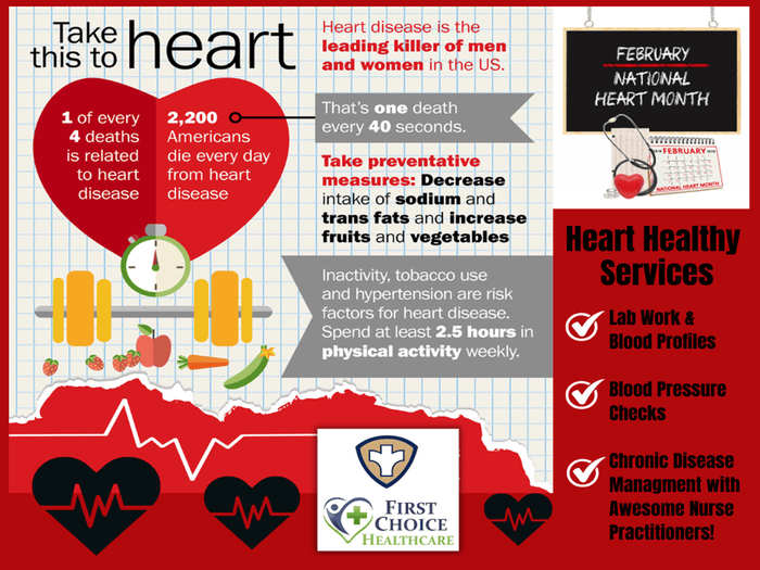 For more information on heart-friendly programs and services, call the First Choice Healthcare clinic nearest you: Kewanee (309) 852-5272; Colona (309) 792-4011; and Toulon (309) 852-3115, or visit our website at www.henrystarkhealth.com, or find them on Facebook and Twitter.