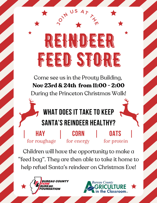 Bureau County’s agricultural scene comes alive this holiday season as the Ag in the Classroom initiative introduces the Reindeer Feed Store. Set to charm families at the Princeton Christmas Walk on November 23rd and 24th, 2024, this unique event offers a peek into the world of farming, focusing on the production of grains and hay specifically for reindeer. More than just an educational experience, children attending the event will have the delightful opportunity to make and take home their very own reindeer feed bag. This engaging activity aims to foster a deeper understanding of agriculture from a young age.