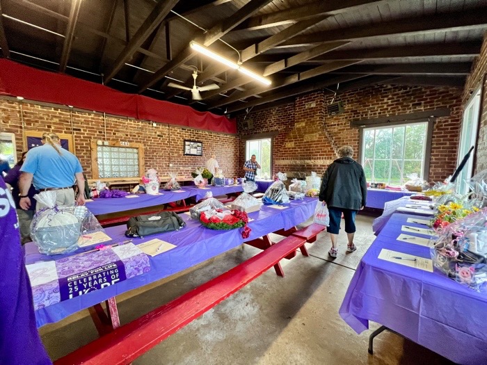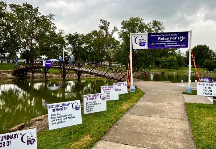 The 2024 Relay For Life may be delayed by the rain, but that isn’t stopping people from coming out and supporting the American Cancer Society and the fight for a cure for cancer. Pictures and videos will be added throughout the night. The auction items are in the shelter house and there are shirts for sale as well.