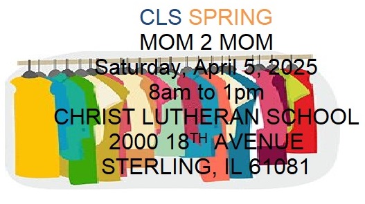 Christ Lutheran School Boosters is happy to announce that it will be hosting a Spring Sterling Mom 2 Mom Market on Saturday, April 5th, from 8 am to 1 pm at Christ Lutheran School, 2000 18th Avenue, Sterling, IL.