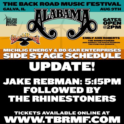 The Back Road Music Festival is set to light up Galva with an impressive lineup this year. The gates opened back up after a storm system caused a delay. Emily Ann Roberts takes the main stage at 4:30, followed by Jake Rebman at 5:15 on the side stage. The Rinestoners take the stage after Jake Rebman. BlackHawk and Alabama take the main stage after the Rhinestoners to close out the 2025 Back Road Music Festival. With high temperatures expected, attendees may bring two sealed water bottles and should pack low-back chairs. For more information or to purchase tickets, visit thebackroadmusicfestival.com. Third-party tickets will not be honored; only tickets directly from The Back Road Music Festival will be honored. Remember to stay hydrated today, wear sunscreen, and limit time in the sun. Visit The Back Road Music Festival booth today to get your Back Road merchandise.