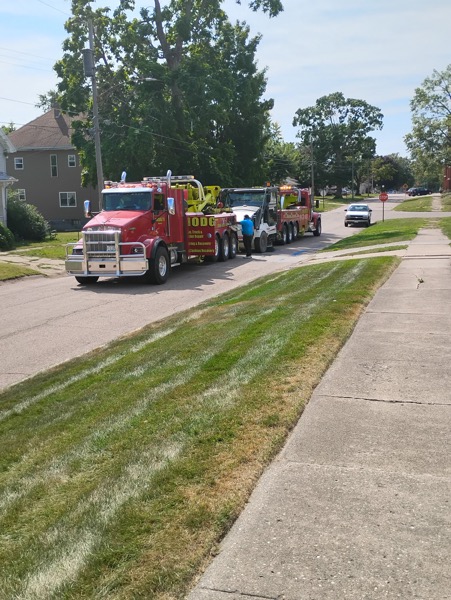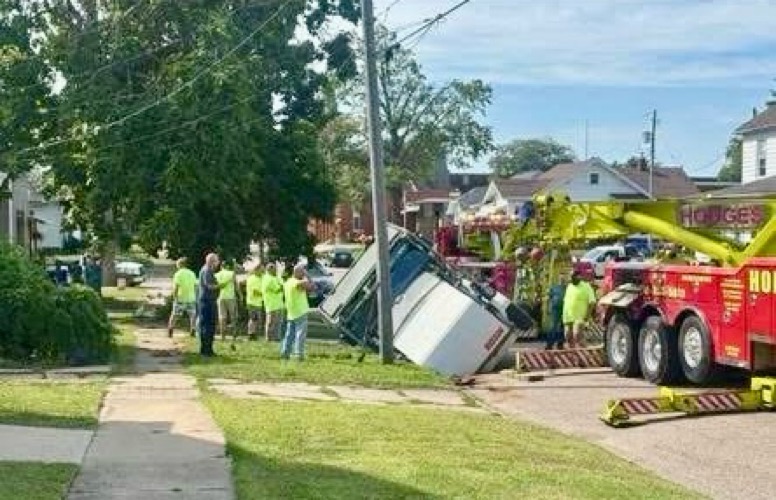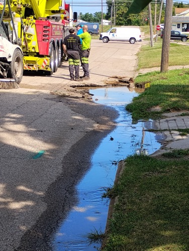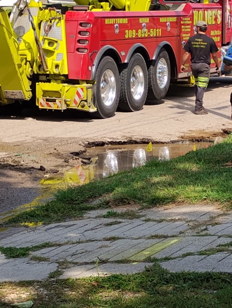 A sinkhole opened up on North Elm Street in Kewanee today ,between East 2nd and 1st Streets, partially swallowing the street sweeper. Hodge’s was able to pull the street sweeper from the sinkhole and city employees say the street sweeper doesn’t appear very damaged. The sinkhole is approximately four feet deep and stretches from the curb and into the northbound lane. The road is expected to be closed for crews to work on the water break. A broken water line caused the sinkhole.