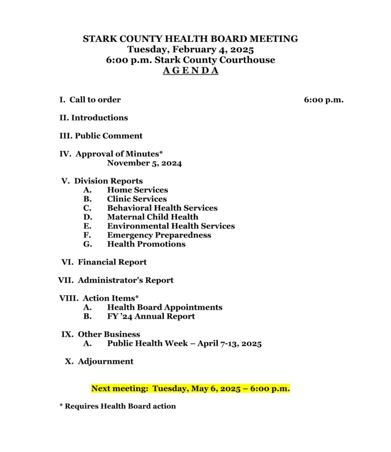 Stark County Health Board Quarterly Meeting Scheduled for February 4, 2025