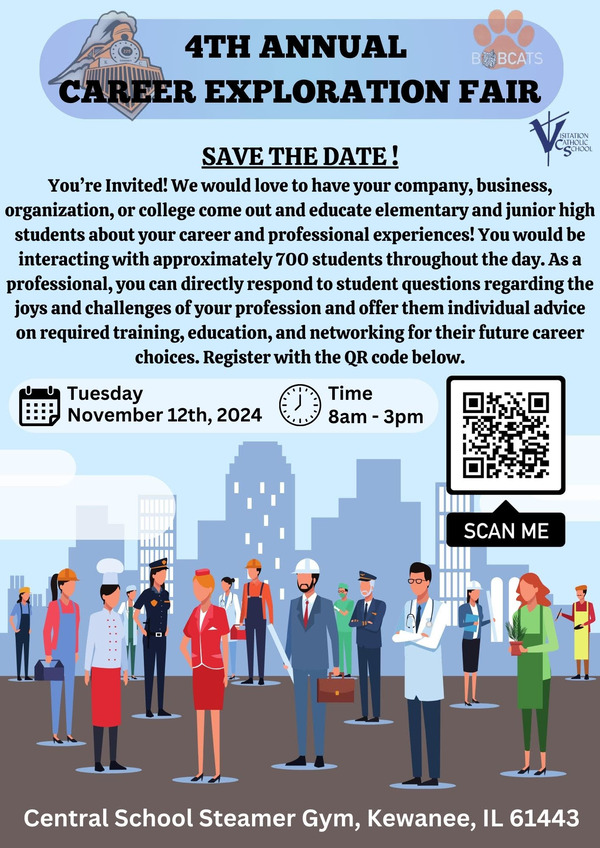 The 4th Annual Central School Career Exploration Fair is set for November 12th, 2024, at Central School Steamer Gym in Kewanee, Illinois. The event will run from 8 AM to 3 PM, providing an opportunity for companies and professionals to engage with about 700 elementary and junior high students. Participants will educate youngsters about various professions, sharing insights into the educational and training requirements needed for different careers.