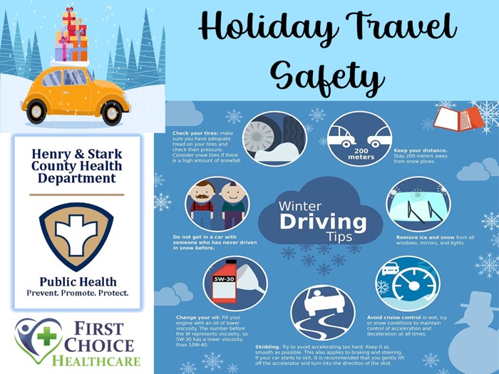 As holiday travel plans increase, the Henry and Stark County Health Department, along with AAA, is reminding drivers to prepare for safe journeys. Before hitting the road, have your vehicle and tires inspected, ensuring all maintenance is up to date. Plan your route to avoid congested areas, and consider adjusting your travel times to steer clear of heavy traffic. Secure valuables out of sight, and if you have children with you, keep a close eye on them during stops. Carry roadside assistance contacts as well as a charged cell phone. Taking these steps can help ensure a smooth holiday trip.