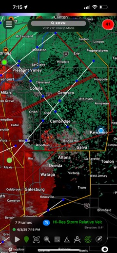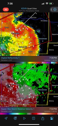 7:35 PM – The storms are headed towards Kewanee and Annawan. The echo is headed at Annawan.